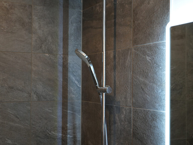 • Bad mit grauen Steinfliesen